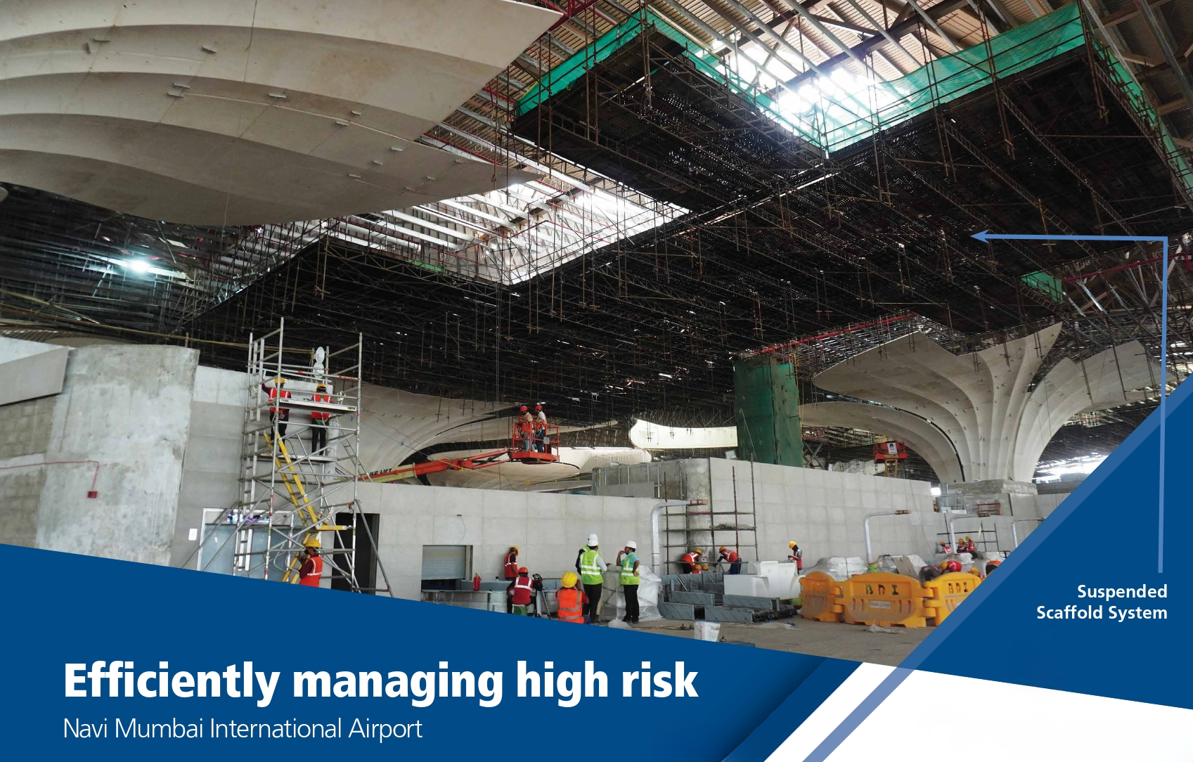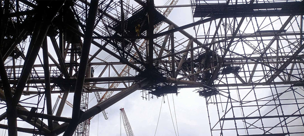A team of formwork experts, structural engineers, and EHS professionals put their heads together and came up with a solution that addressed all of the team’s issues. “We introduced a suspended scaffold system, with the working platform placed at a height of 16 m, erected using Mobile Elevated Work Platforms (MEWPs) to mitigate fall risks,” reveals Santhosh.