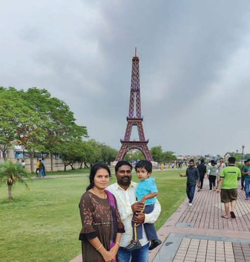 Udaya comes from Gaddamavari Palli village in Andhra Pradesh’s Tirupati District. His family includes his retired father, his mother, wife (Naga Jyothi, a homemaker, who manages his home and supports him), and his young son, Nayanesh. In his free time, he enjoys playing cricket and learning new skills through online courses.