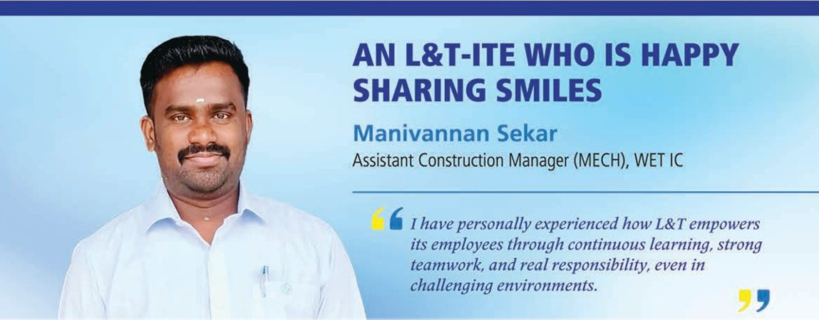 A proud L&T‑ite at heart, Manivannan says, “I have personally experienced how L&T empowers its employees through continuous learning, strong teamwork, and real responsibility, even in challenging environments. That sense of trust and impact is something I value deeply.” The strong bond he feels with his Company is strengthened by the clear direction and timely support he receives from his seniors, empowering him to take quick decisions. “They empower me to take ownership, which drives accountability and efficiency while I coordinate and openly communicate with my team members, working together to resolve challenges quickly and keep the workflow smooth. This collaborative environment helps me deliver with both speed and scale.”